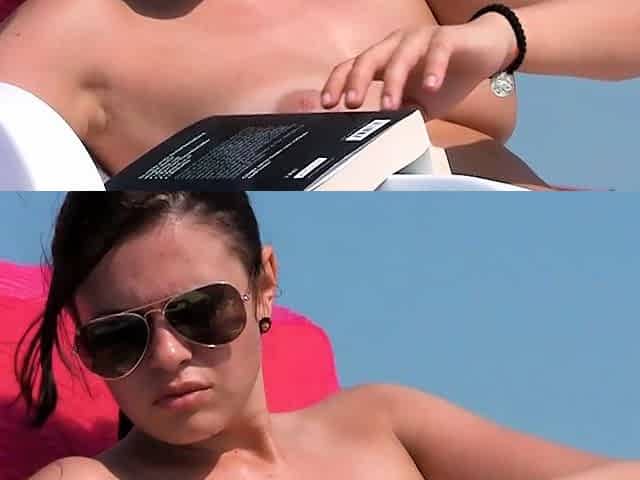 Nudist teen loves being naked while sunbathing on the beach