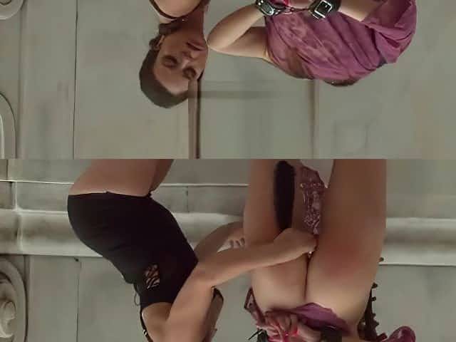 Brunette canes ass to blonde outdoor