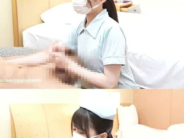 Japanese nurse gives a patient a hand job