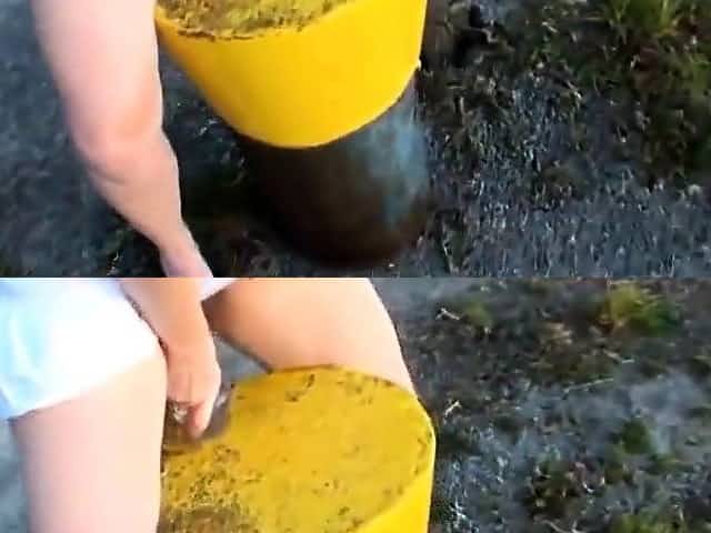 Billige Hartz-4-Nutte steckt draussen Dildo in die Fotze!