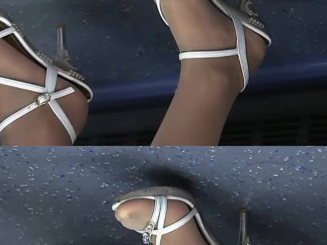 Candid Sexy Asian Shoeplay Dipping Feet Nylons Tights Face