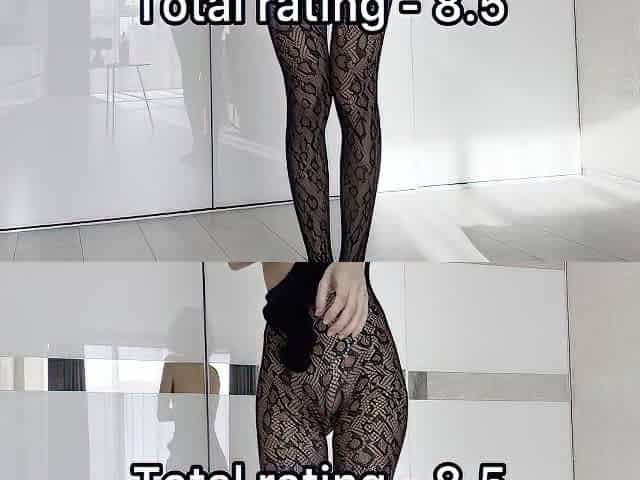 Skinny Slender Girl Try-on Bodystocking. Tight, Shiny & Thin Curves