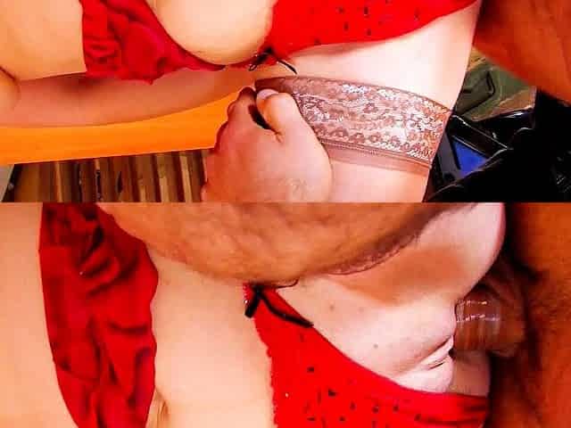 Chubby mature Anna blows and gets drilled in her lingerie and eats cum