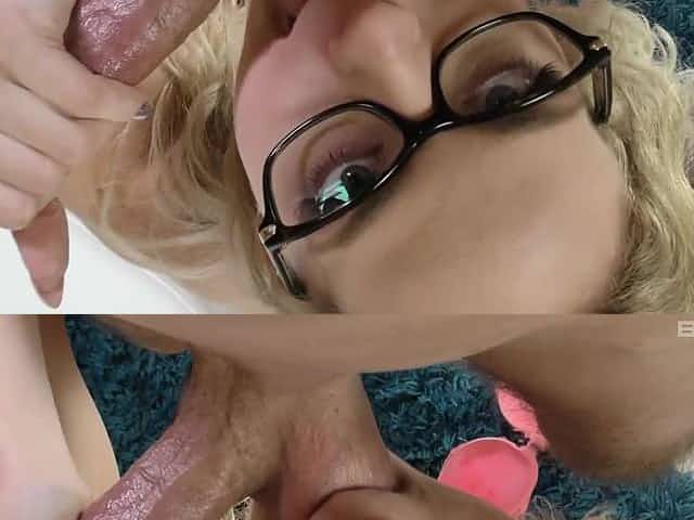 Blonde mom sucks a cock before taking a ride on it