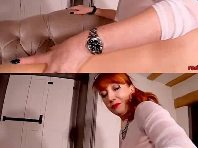 Red XXX teases her cunt during the time that in hose