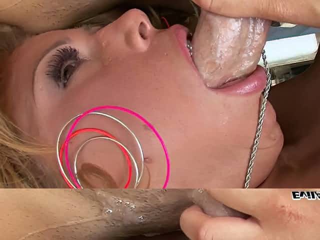 Wonderful big breasted auburn nympho gives deepthroat blowjob to cocks