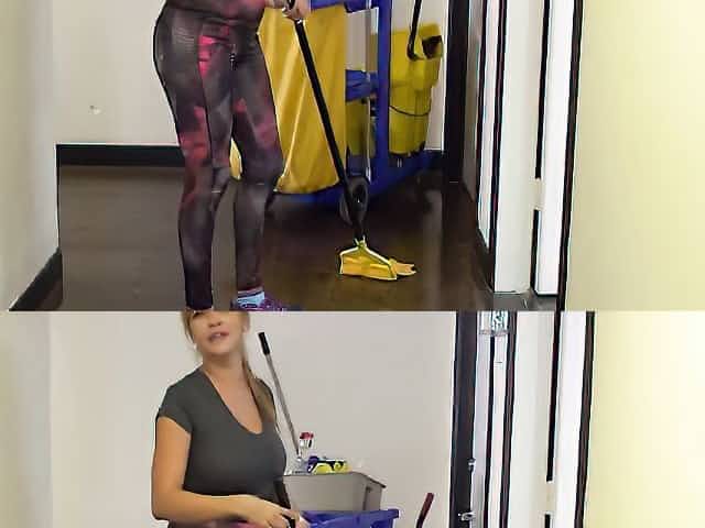 Cleaning lady with the biggest juggs got some pussy drilling by her boss in the office