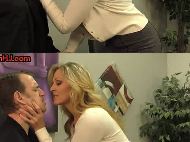 DIVINE STRUMPETS - Femdom HJ older wanks chap weenie in office untill jizz flow