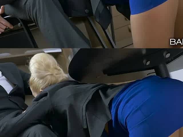 Hot young blonde assistant sucking her boss's cock in the office