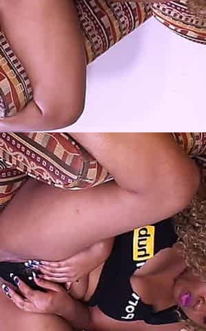 Sexy, Black woman is holding her legs widen wide open during the time that getting drilled hard, on the daybed
