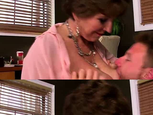 Busty Grandma and Big Ass Mom Teaching Son - old and young threesome