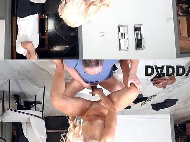 Golden-haired stepdaughter gives a oral job to stepdad if this guy takes over the cleaning in the abode