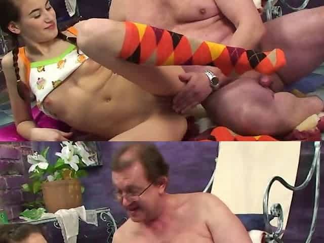 Old man helps masturbating teeny to finish