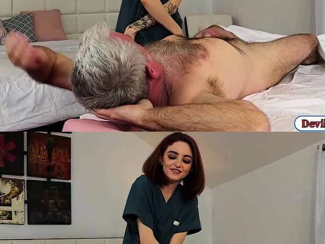 Sexy masseuse fucks old man and squirts
