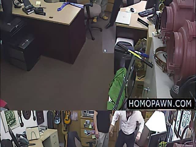 Old desperate man fucked the pawnshop owner in the ass bu his redhead cock