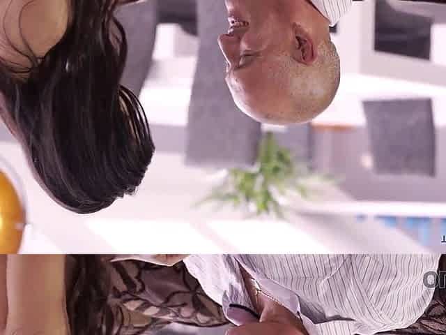 Rich old man spends wonderful time with gorgeous brunette Angie Moon