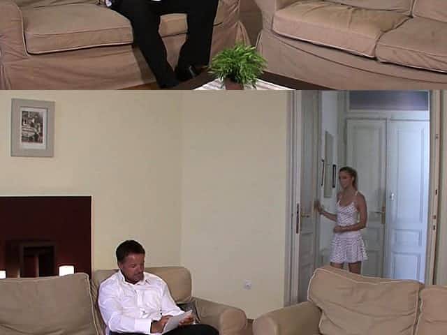 Fucking on the sofa between an older guy and sexy teen Jenny