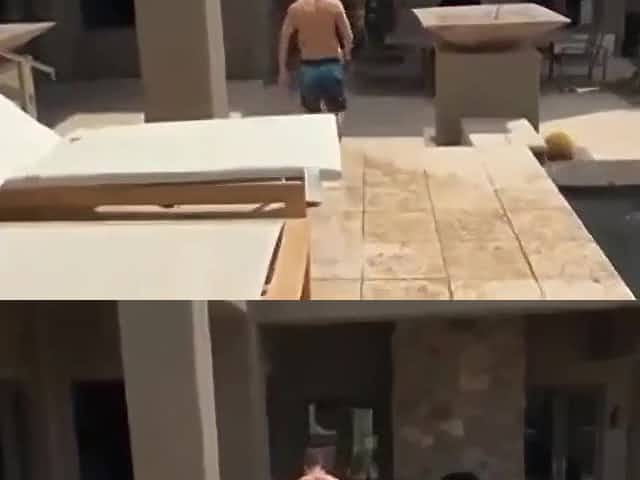 Golden-Haired mamma in a small, pink bikini is having casual sex with a younger man