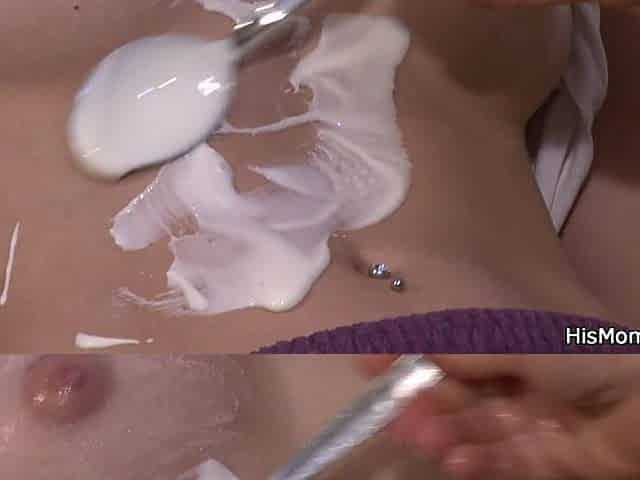 Tits play with cum on tits