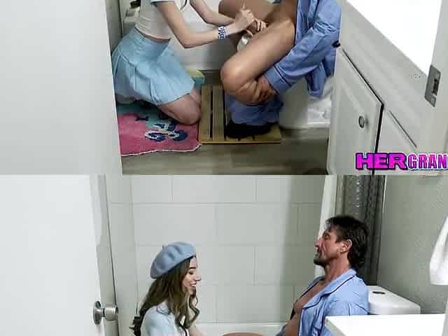 Gags On Her Stepgrandpas Cock With Mila Ieye And Camila Cream