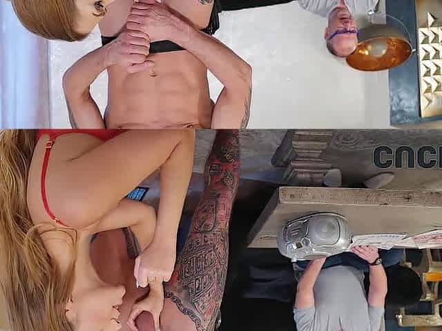 German Old Cuckold Husband Watch While His Redhead Tattoo Wife Cat Coxx Fucked by Boy