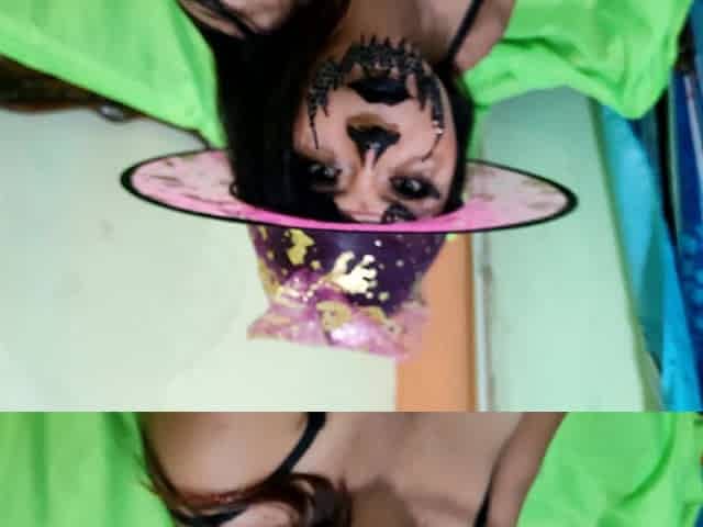 Porn on Halloween!! Young Woman Witch with Hat Gets on the Couch, and Asks Her Guest to Caress Her Before Having Sex