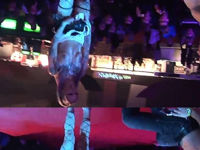 extreme rough threesome orgy on public show stage