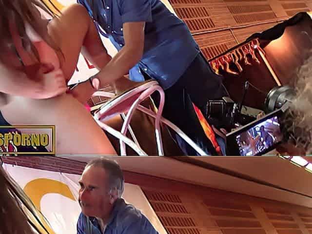 Hot brunette teen babe fucking beard guy on stage