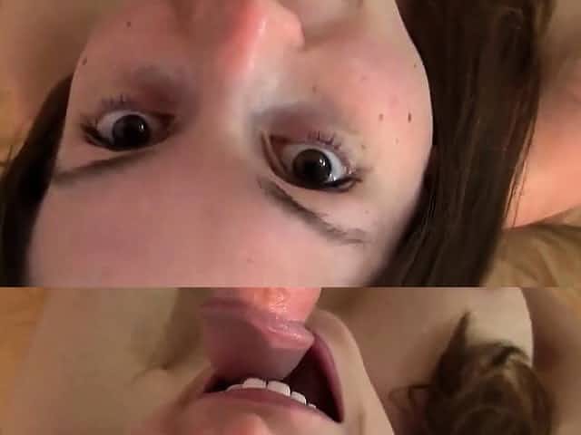 Девушка глотает мой хуй вместе с яйцами и получает в рот сперму