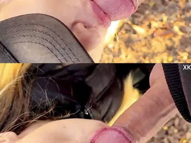 Eager stepsister loves to suck everything in the woods during some risky public fun