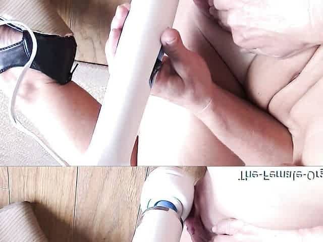 Cock vibrator toy teasing with contractions orgasm in latex rubber clothes