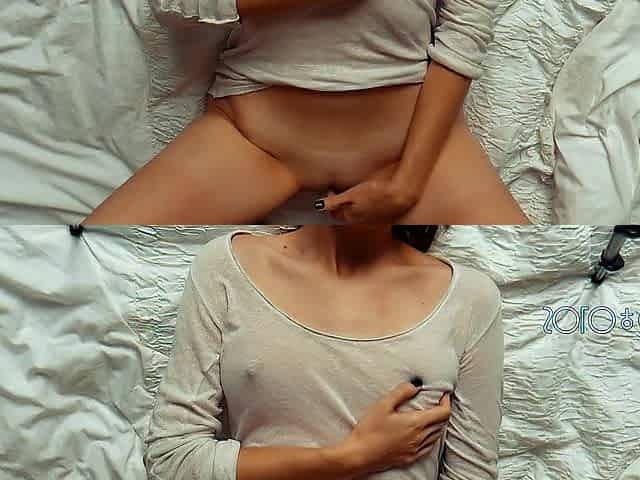Babe masturbates to get her nipples hard from loud screaming orgasms