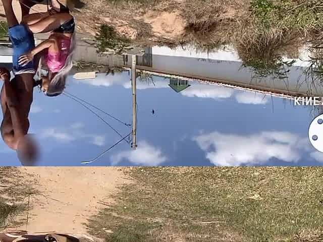 Smokin' Hawt Darksome Skin Ebony Black Afro Chick Chilling By The Pool Sucking Rod