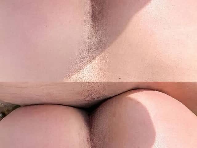 Dildo anal insertion on public beach