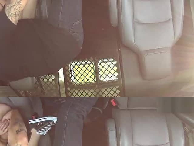 Outdoor Cock Bondage Cum on Feet in Heels & Fishnet Catsuit