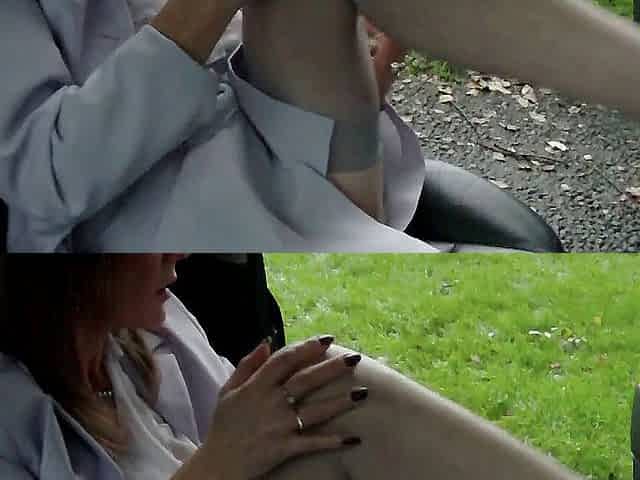 Playing With Her Hairy Pussy Outdoors.