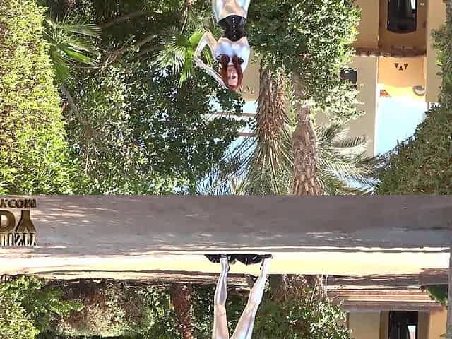 Big-boobed chick Eliza Ibarra opens her little hole on the poolside