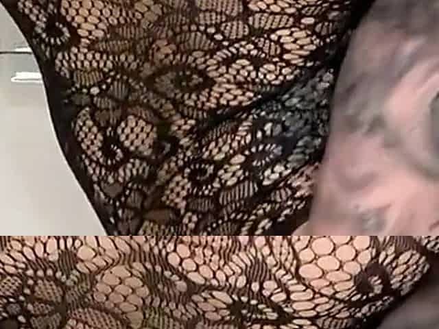 Paige Is in Fishnets Taking a Big Black Cock Dildo and Finishes with Her Mouth