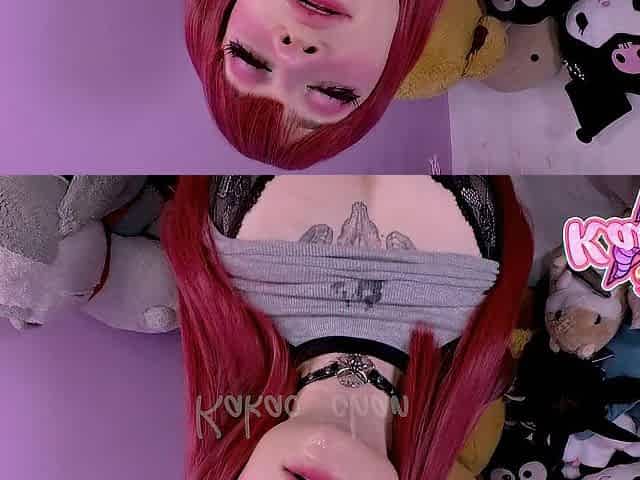 Topless Pale Slut Rubs Spit on Her Boobs as She Deepthroats on a Dildo
