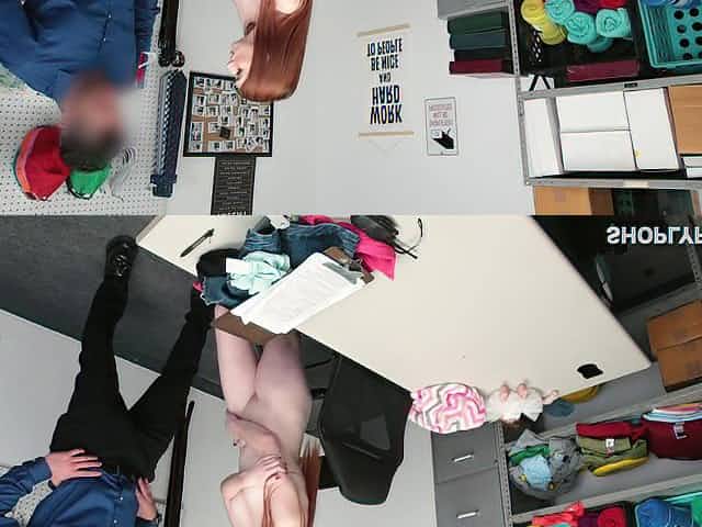 Redhead Aria Carson pleasures a security guard to be free to go