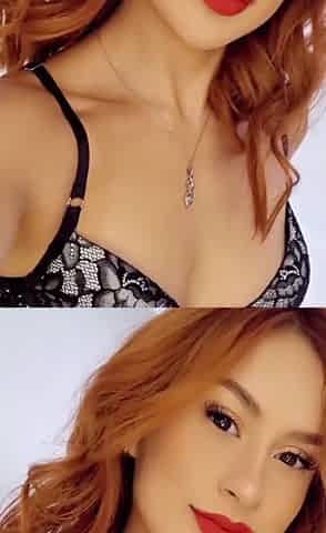 Kinky redhead Amber Gree with glasses shows her tits and holes