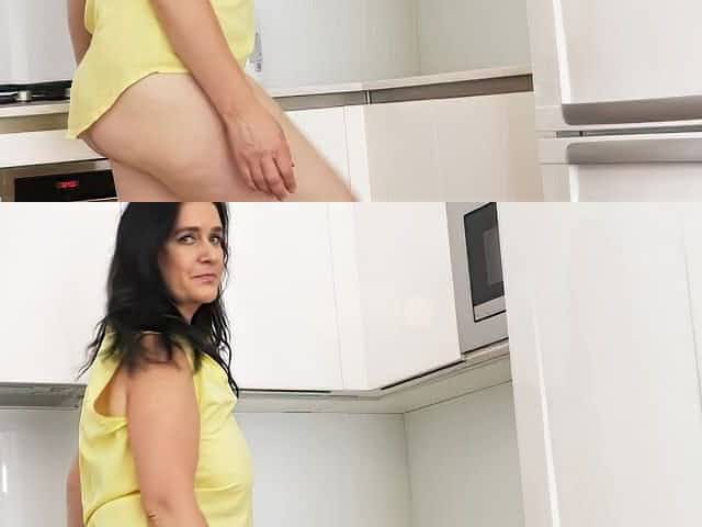 Filthy middle aged mom masturbates watching Dinara & Tina having lesbian sex in a kitchen
