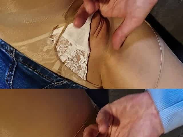 Sexy housewife Beth is flashing her plump alluring pussy upskirt