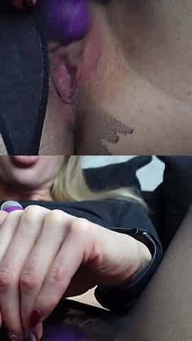 Hot Blonde Orgasms in Her Black Nylon Pantyhose
