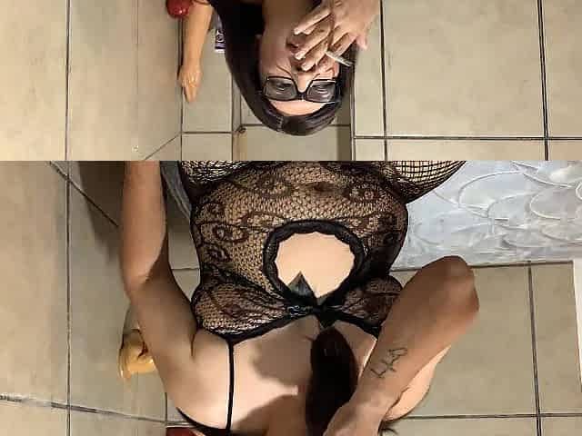 Horny Woman Rides a Dildo in Pantyhose.