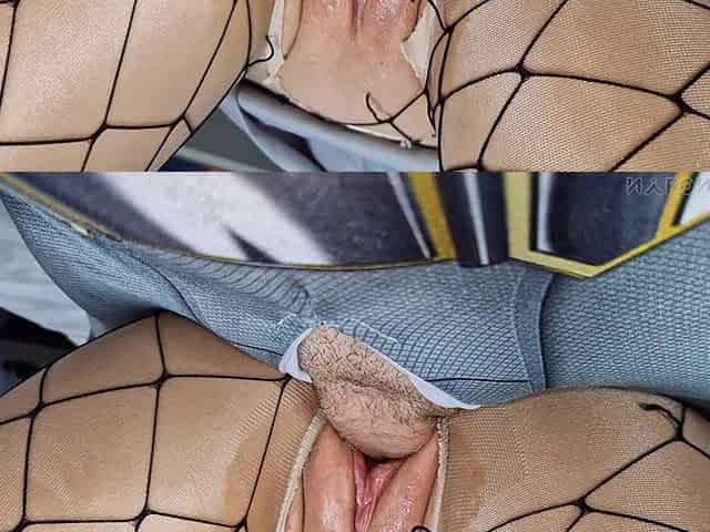 Bang Throughout a Gap in Seamless Hose and Cum on Feet