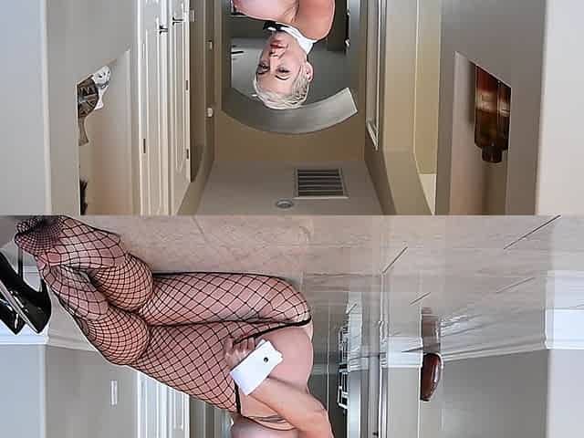 Mature blonde wearing fishnet lingerie & high heels - Cassplay