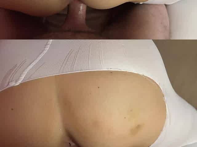 First Anal of an 18-year-old Blonde in Fishnet Tights and a White Bodysuit, Creampie