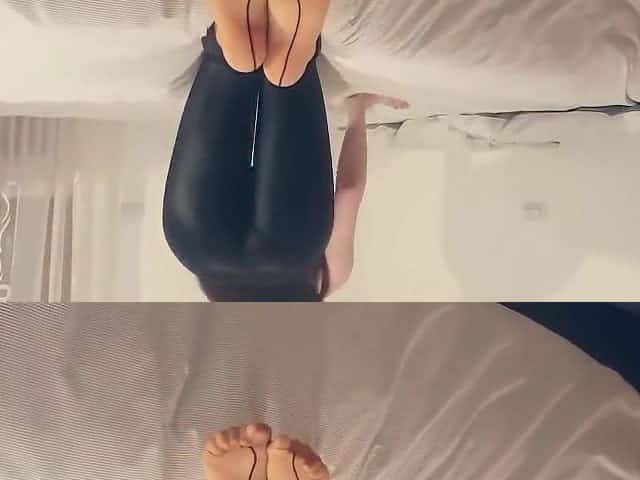 Showing off sexy feet nylon and masturbating