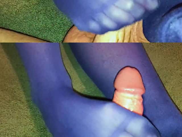 Footjob from Pinky in Blue Pantyhose